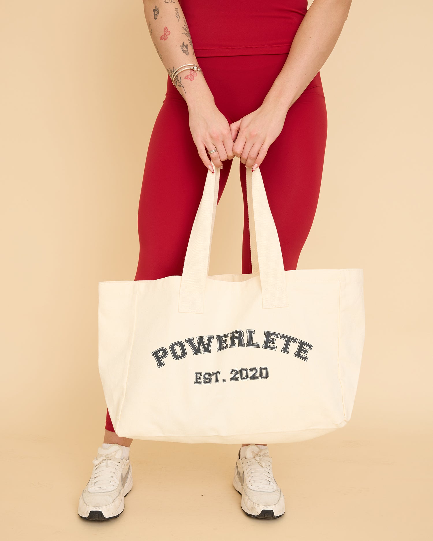 Treffen Sie die Powerlete Varsity Tote – dein neuer Alltagsbegleiter. In neutralem Beige mit markantem schwarzem College-Logo vereint diese Tasche Stil und Funktionalität perfekt. Ob beim Sport, beim Einkaufen oder beim Ausgehen – sie ist wie geschaffen für deinen aktiven Lebensstil. Praktisch, robust und lässig-cool: Die perfekte Tasche für alles, was der Tag bringt.