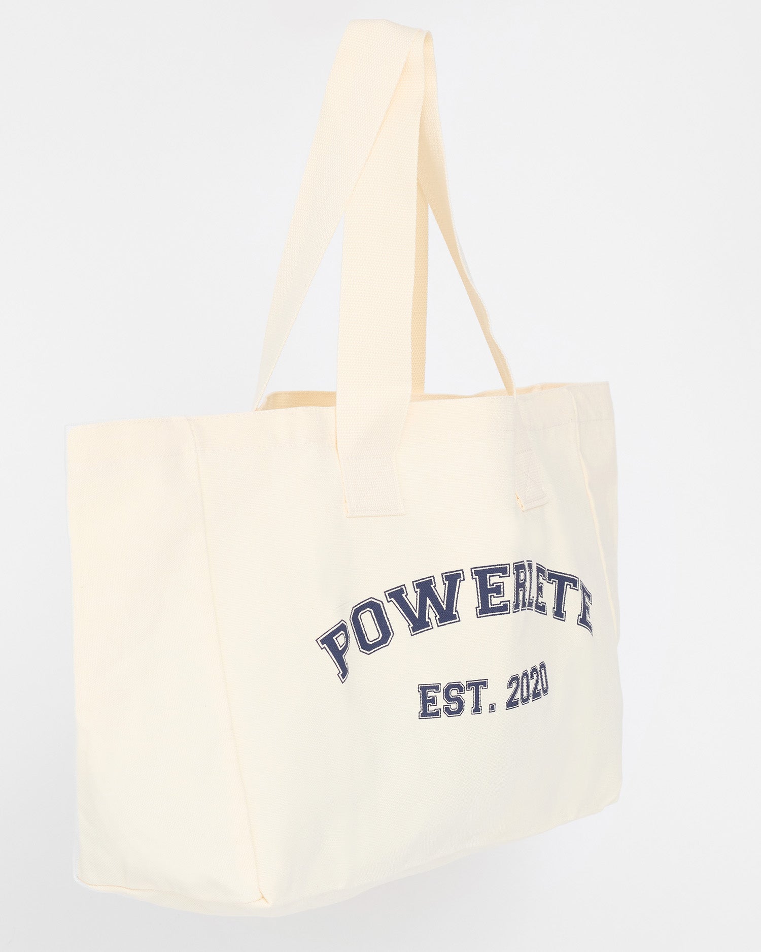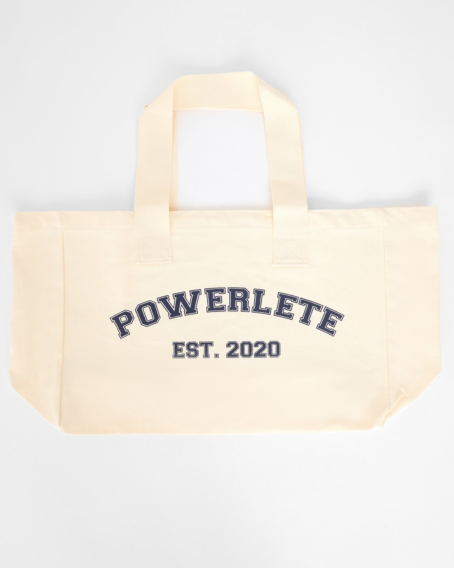Meet the Powerlete Varsity Tote - your new everyday essential. In a neutral beige with a bold navy varsity logo, this tote is the perfect blend of style and function. Whether you’re hitting the gym, running errands, or heading out, it’s built to keep up with your busy lifestyle. Practical, durable, and effortlessly cool, it’s your go-to bag for whatever the day throws at you.